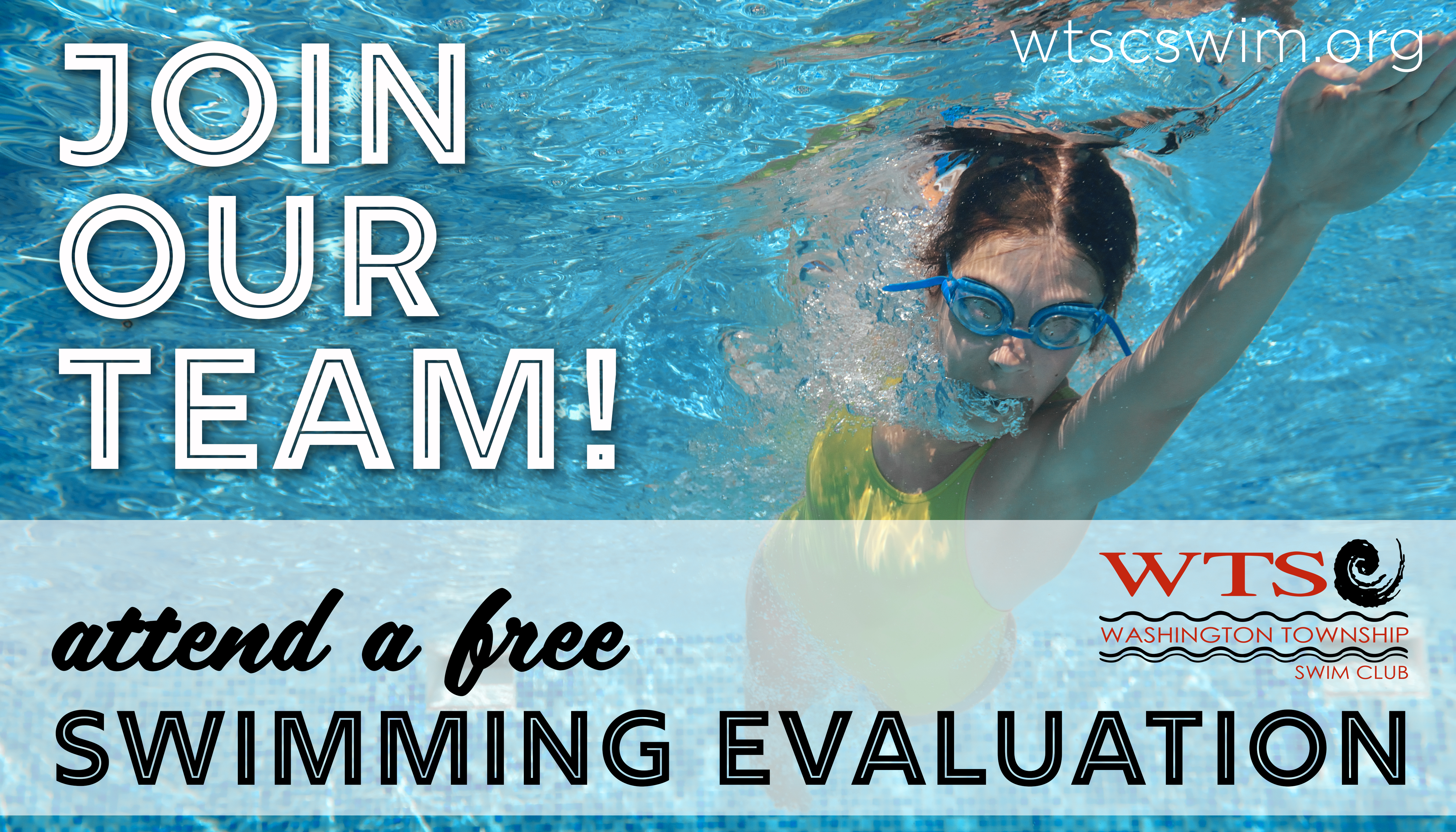 Please plan to attend a free swimming evaluation. Bring your child with a swim suit, towel and goggles anytime between 6:00 – 7:00 p.m. and a WTSC Coach will provide an evaluation of your child’s swimming level and discuss their options with the swim club. While you are there, talk with swim club parents about the club and get all of your questions answered.